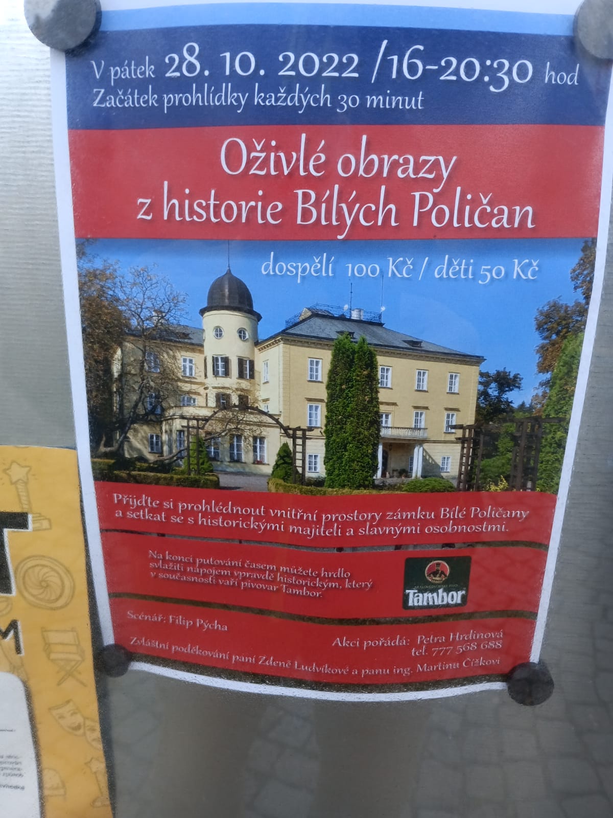 Putování časem v Zámku Bílé Poličany. Přijďte se podívat v pátek 28. 10. 2022 na oživlé obrazy historických postav a slavných osobností.