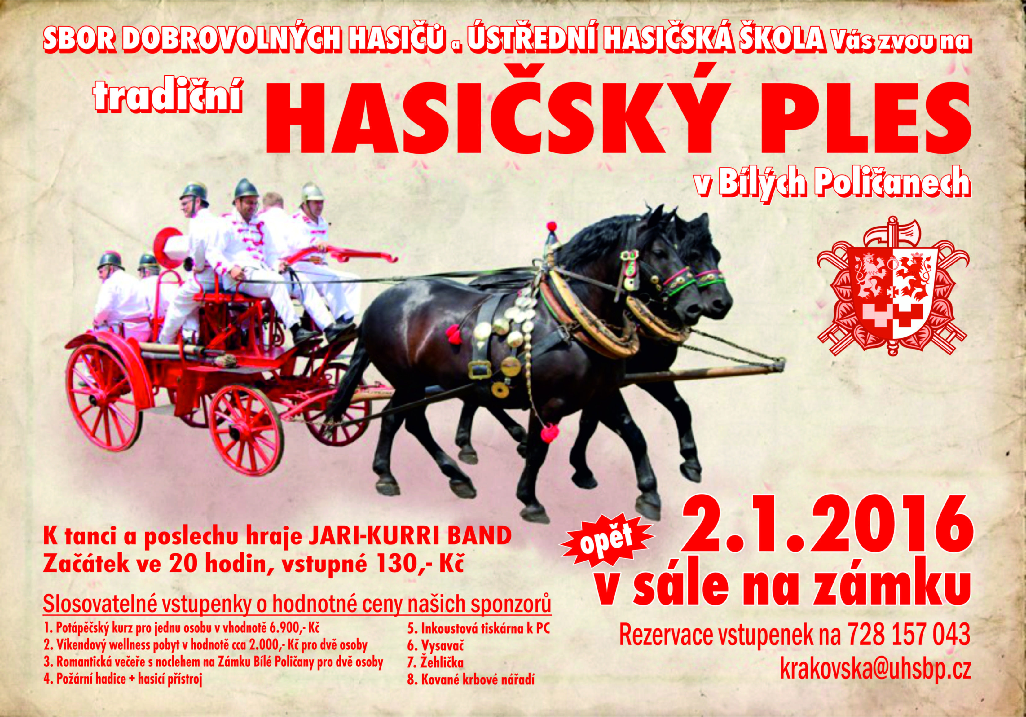 Tak jako téměř každý rok, koná se první sobotu po Novém roce tradiční Hasičský ples. Po několika letech se koná opět v sále na zámku. Přijďte si zatančit, pobavit a zavzpomínat. Vstupenky budou slosovatelné o hodnotné ceny sponzorů SDH Bílé Poličany.