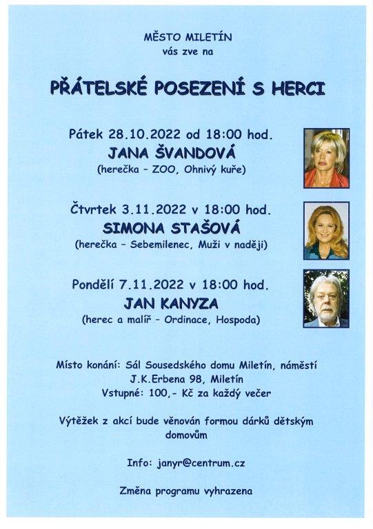 Město Miletín zve naše občany na přátelské posezení s herci. Bližší informace v přiloženém letáku ZDE.