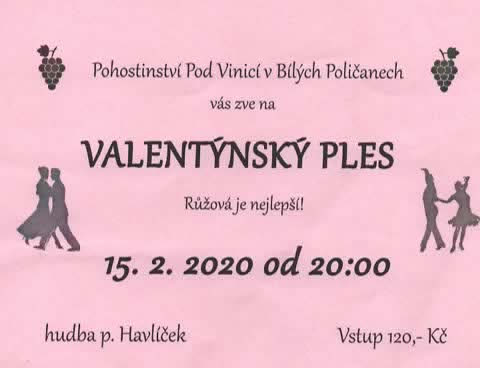 Pohostinství Pod Vinicí v Bílých Poličanech Vás zve na VALENTÝNSKÝ PLES. Ples se koná 15. února 2020 v pohostinství Pod Vinicí. Začátek ve 20:00 hodin, hraje hudba p. Havlíčka.