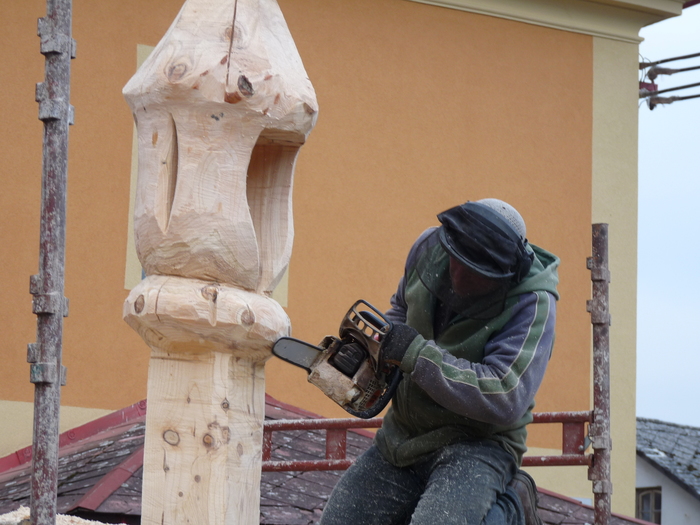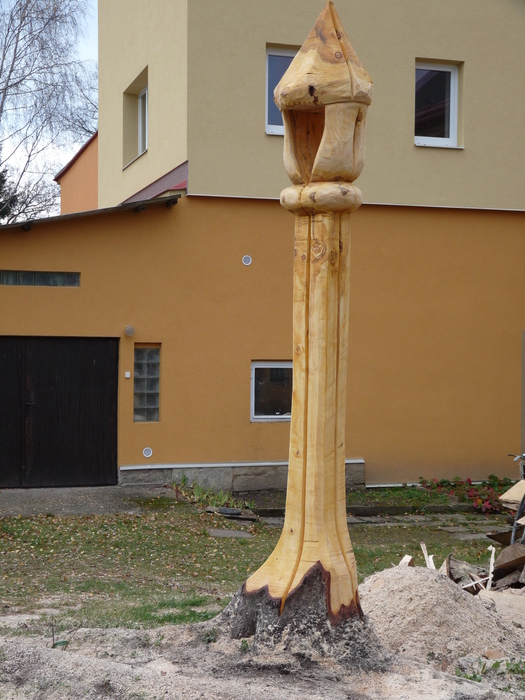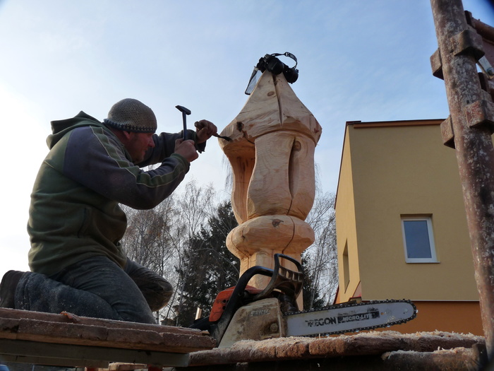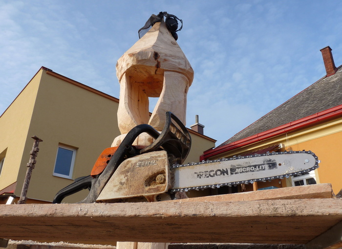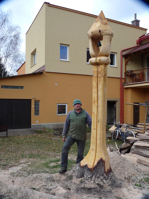 Letitý strom za budovou Obecního úřadu dožil. Byl poškozen bleskem, měl ulomenou špičku a stínil bytům v čp. 10. Proto zastupitelstvo v roce 2011 rozhodlo o jeho pokácení. Aby nezůstal prostor zcela prázdný, byl osloven dřevořezbář pan Jan Kužel z Dobré Vody u Hořic. Vznikla tak zvonička, která nyní zpříjemňuje prostor za budovou Obecního úřadu. Chcete-li si prohlédnout další díla pana Kužela, navštivte www.janek66.cz.